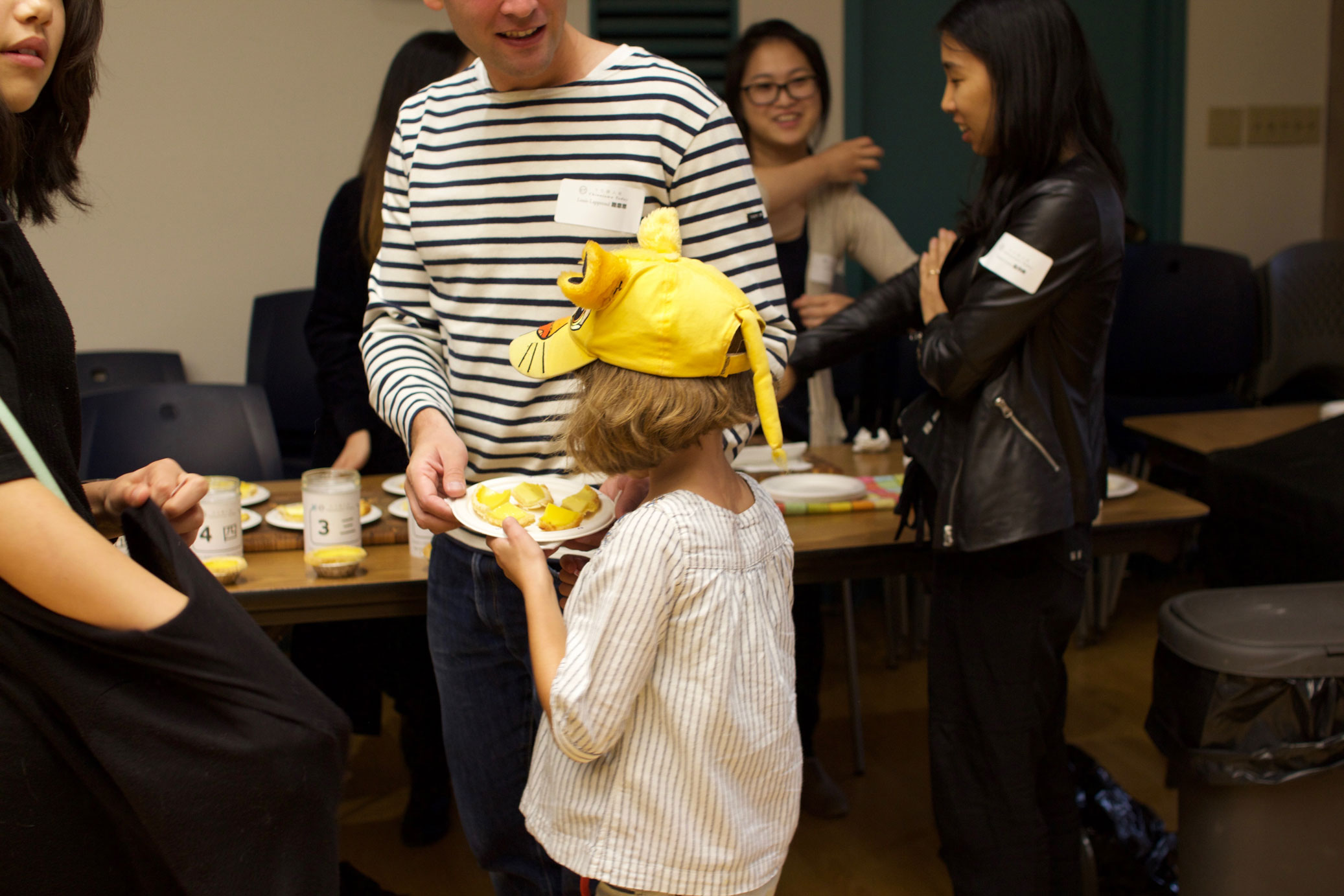 We carried out a controlled experiment with 60 egg tart samples that day from 5 local bakeries, a dozen from each. We gave each restaurant a number, and carefully slicing each egg tart into 4 pieces, we plated them on an environmentally friendly plate numbered 1 – 5 accordingly. All contestants had to do was to finish their 5 samples, and enter their two raffle tickets into either one or two mason jars for us to tally up votes after the event.